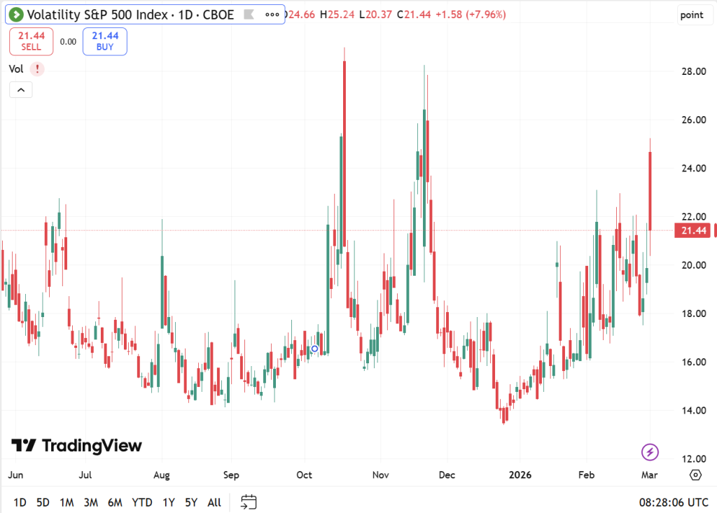 - VIX is elevated compared to recent ranges, but not screaming panic.